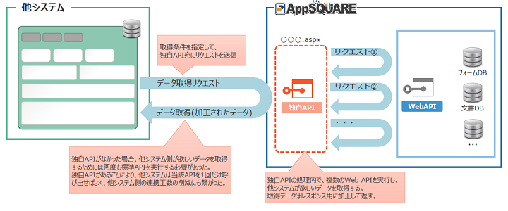 「AppSQUARE」は、他システムとの連携に関してもWeb APIを活用することで、要件定義を効率化できます。