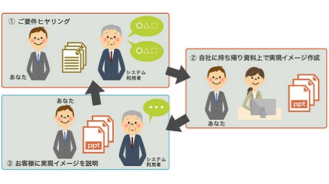 AppSQUAREでは業務画面を簡単に作成できるため、試作品を作りその試作品を利用者に説明することで、利用イメージを具体的に確認できます。