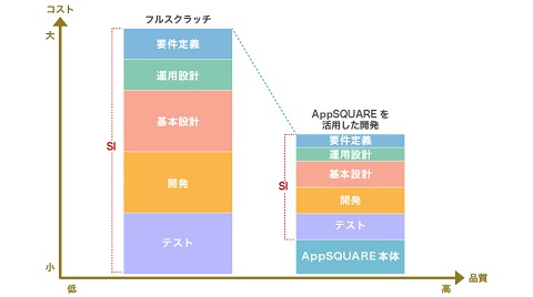 AppSQUAREをシステム開発の工数削減・効率化に活用することができます。ノンプログラミングですので工数削減に大きく貢献でき高品質のシステムを開発することができます。
