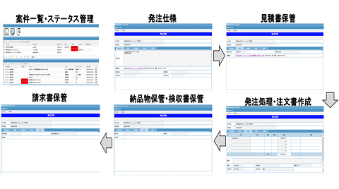 製造業の技術部など、部門で外部に発注を行っている場合、見積、発注、検収、支払依頼までの発注情報を一元化できます。