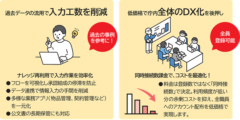 同時接続数課金の低価格設計で、全職員が利用できる庁内DXを無理なく推進します。