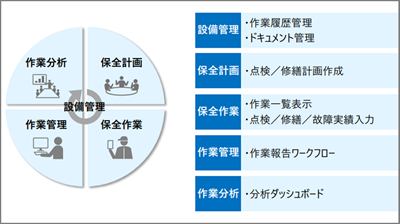 設備保全情報を一元管理し、計画立案・作業管理・報告・分析までトータルでサポート
