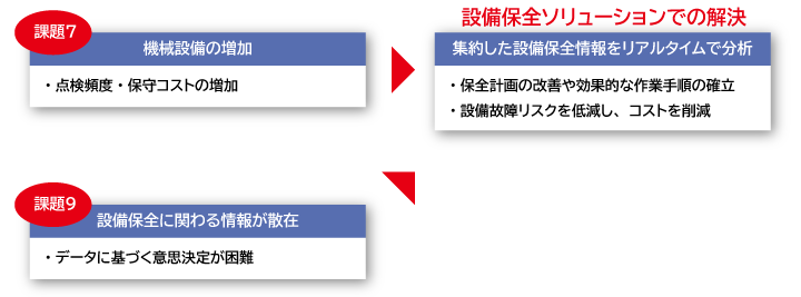 これら9つの課題を設備保全ソリューションが解決支援いたします