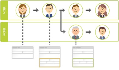 「AppSQUARE」では、社外のサプライヤーとの業務プロセスをワークフロー化できます。そして、複雑な分岐フローにも対応しています。