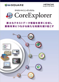 CoreExplorerは大量のテキスト情報を手早く分析し、業務改善につながる「気づき」を見つけるためのテキストマイニングシステムです。簡単なマウス操作でテキストの分析が行える操作性と、結果が直観的にわかるインターフェースにより、利用者が思考のままに分析頂くことができます。CoreExplorerを使うことにより、これまでのテキスト分析が短時間で、客観的になるだけでなく、より細部まで踏み込んだ分析が可能になります。