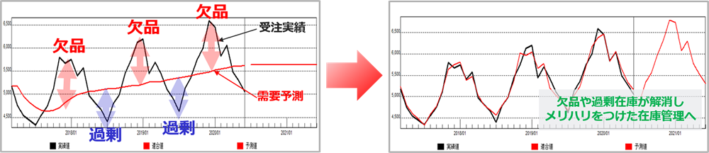 【 単純な需要予測からメリハリをつけた予測と在庫管理を実現 】