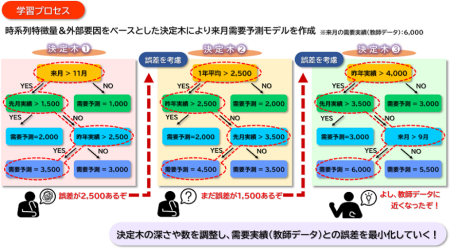 機械学習AIモデルは、従来の時系列モデルでは需要予測が難しかった不規則なデータに対して有効性が高く、予測精度が高い需要予測を実現します。