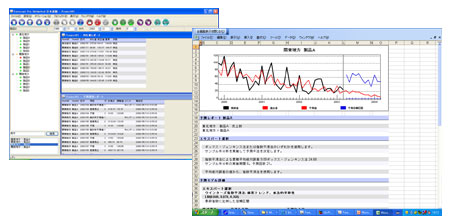 予測結果以外に、予測グラフや予測プロセスを商品毎に出力ができ、ミーティング等で活用できます。また、予測作業情報(予測グラフ、表、予測モデル等)を一括保存することができ、共同での確認・修正作業が可能です。予測調整履歴や外れ値検出のレポートも出力できます。
