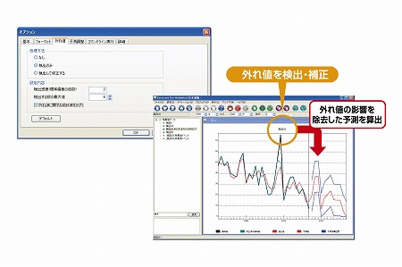 イベント調整モデルでも外れ値を補正できますが、過去実績の標準誤差の倍数を閾値として、これから外れたデータを自動的に検出、補正することができます。品目数が多い場合に有効です。