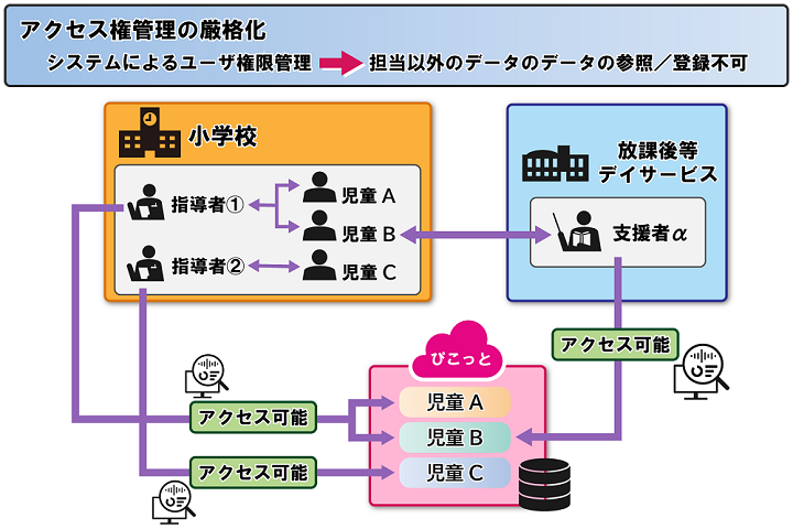 関係者間での情報共有にあたり、各ユーザ別に適切な共有範囲を設定する事が必要です。