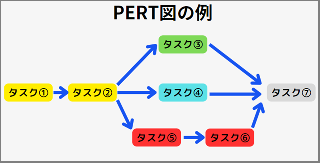 PERT図とは、生産計画における各工程の関係性をまとめた以下のような図です。