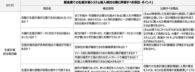 生産計画システムを導入するときに活用できる比較表フォーマットです。 |