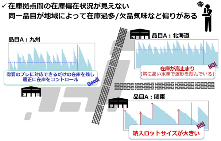 課題3:各拠点の在庫管理レベルにバラツキがあることで過剰在庫につながる