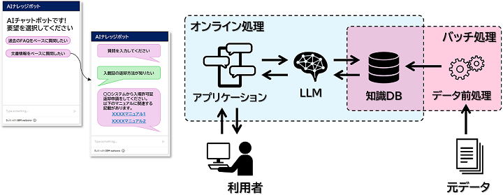 ※ 元データは知識DBに蓄積され、回答の生成のみに利用します。基盤モデル(LLM)の学習には利用されません。