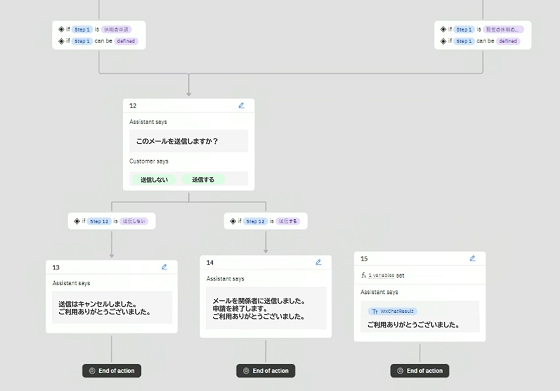 会話のフローはGUIで簡単に設定ができます。業務に合わせたカスタマイズにも複雑な知識は不要です。