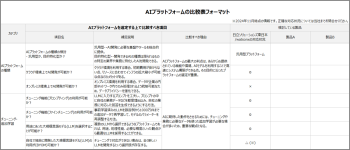 AIプラットフォームを導入するときに、どういった項目で比較すべきか?の比較表のフォーマットです。