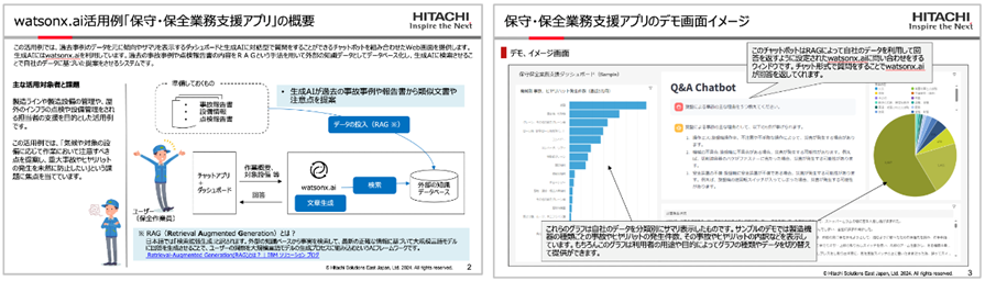 この資料では、watsonx.aiを活用して生産設備の保守・保全業務を支援するアプリのユースケースをご紹介しています。主に、点検前の計画業務や過去事例の検索、振り返りでの活用例をご紹介しています。AI活用が御社でも検討できないか、そのヒントにこの資料をご活用ください。