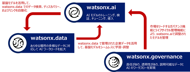 watsonx.aiは従来の機械学習と、基盤モデルを活用した新しい生成AI機能の両方を学習・検証・調整・導入できるAI構築のための次世代の企業向けスタジオです