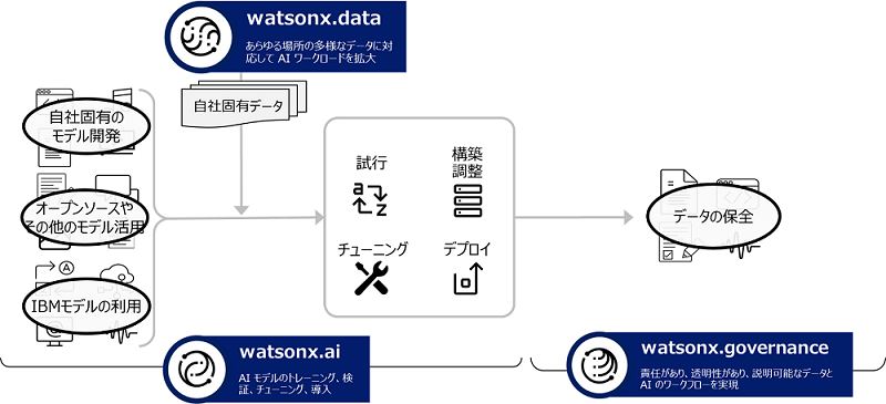 基盤モデルの学習、チューニング、稼働後のデータの保全のまでの一連の流れをサポートします。