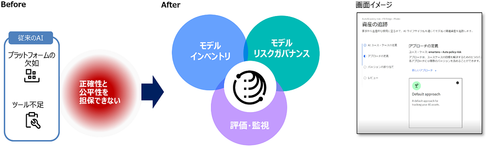 AIライフサイクル全体にわたるモデルのプロセスを自動化し、企業に沿った企画と人による監視業務を考慮してオンプレミスとクラウドの両方でモデルを構築、デプロイし、複雑化するMLモデルの課題に組織が対応できるよう支援します。