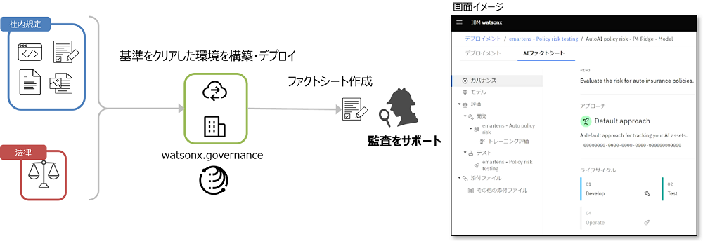 保護機能と検証機能により法規制へのコンプライアンスをサポートし、公平性と透明性が高い、各種基準をクリアしたモデルを構築・デプロイします。モデルに関連するファクトシートを自動的に文書化して、監査をサポートします。