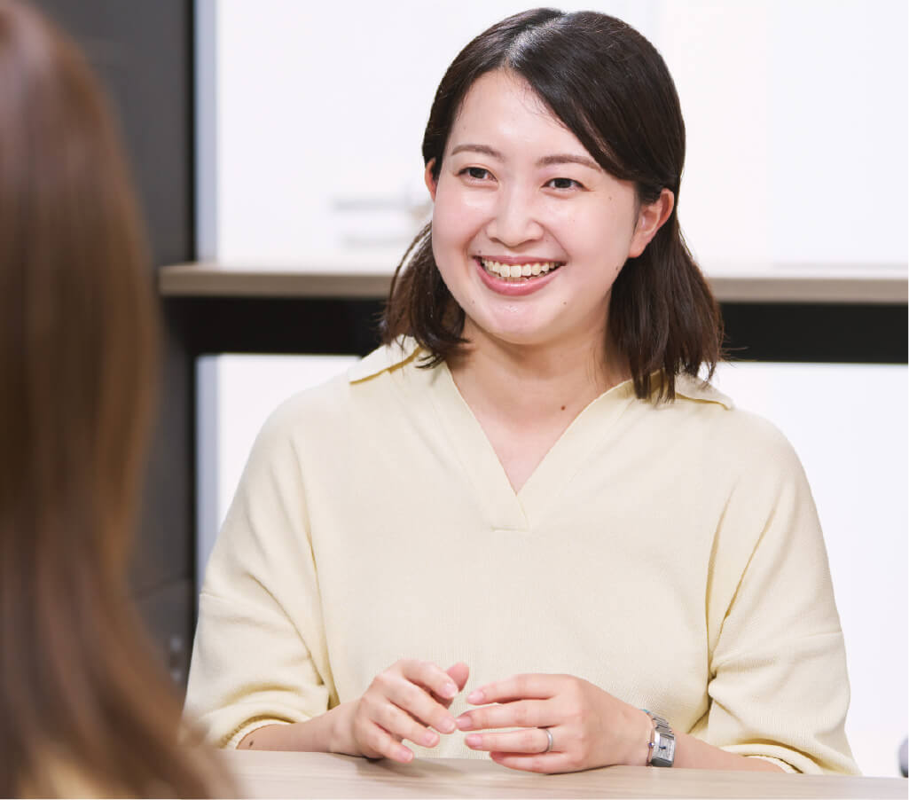 そうなんです。教育は手厚いものの、やはり未経験という側面から不安が残り、内定をいただいてから入社を決断するまで、少し時間がかかりました。そんなときに背中を押してくれたのが、大内さんをはじめとした社員の皆さんです。「今どんな不安がありますか?」「他社と比較してどういうところで迷っていますか?」など、内定承諾を急かすことなくコミュニケーションをとってくださり、女性で文系出身の社員の方への相談の場も設けてくれたのです。話を聞く中で不安も払拭されましたし、人に本気で向き合ってくれる社風も感じて入社を決めました。